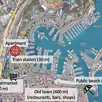 У Studio With Port View Terrace With Ac є мінікухня, де гості можуть самостійно готувати їжу. Апартаменти також розташовані за 5 хвилин пішої прогулянки від "Mister Pizza", де подають страви італійської кухні. Автовокзал Pole d'Echanges d'Antibes знаходиться за 5 хвилини пішки.